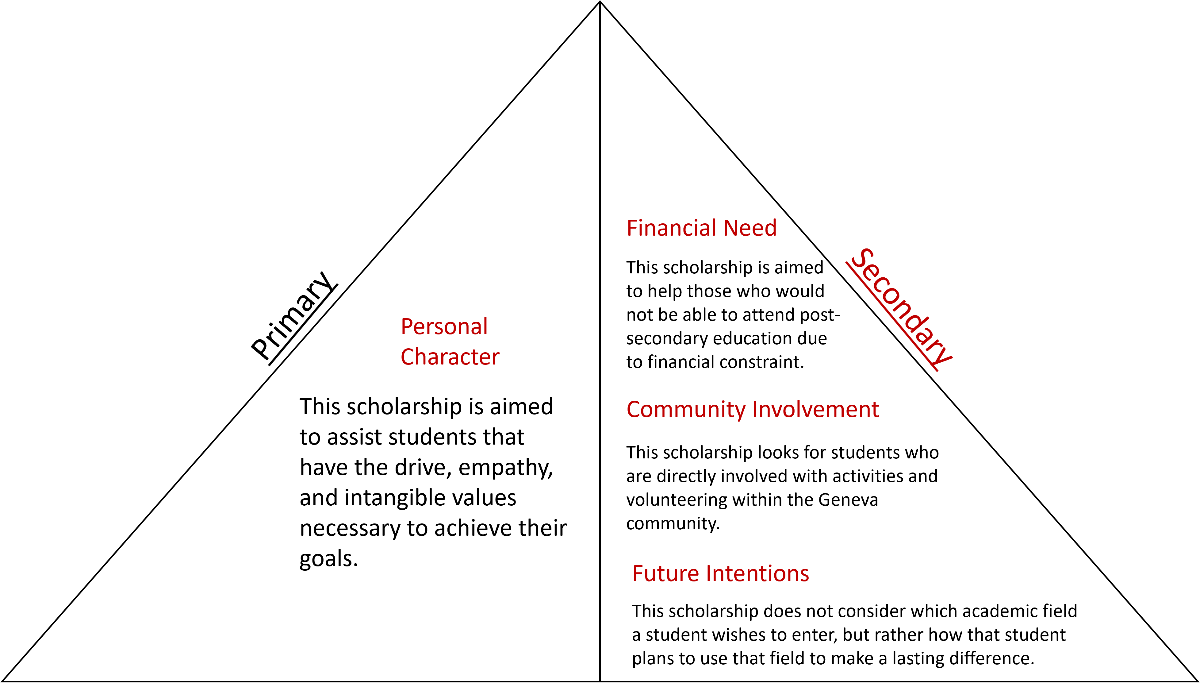 The Genevan of Change Scholarship looks for students that are driven, grounded to their community, and look to empower others. The scholarship committee will consider the following criteria in their evaluation process: